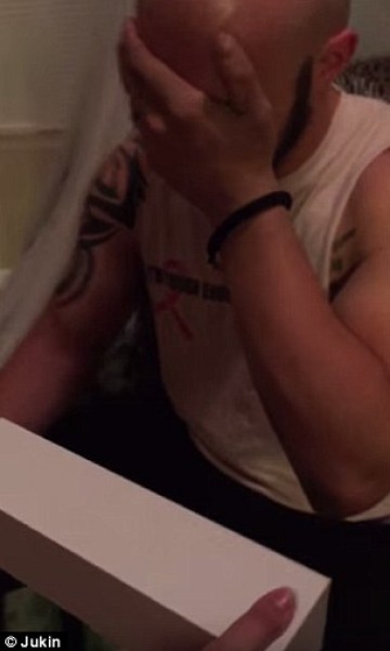 انفجر رجل في البكاء فرحا بشكل هستيري بعدما فاجأته زوجته بخبر حملها من خلال وضع اختبار الحمل الإيجابي داخل علبة ساعة «أبل» «أبل ووتش» وإعطائها له على شكل هديّة.
